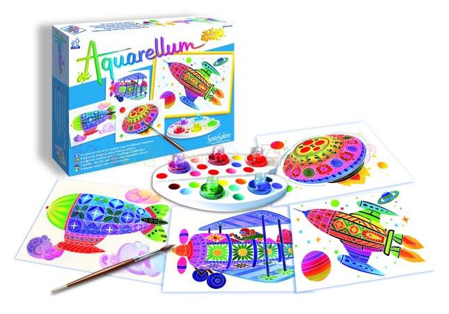Z AQUARELLUM każdy jest w stanie namalować piękne obrazy metodą akwareli. Szkice zabezpieczone są lekko wystającą obwódką utrudniającą "wychodzenie za linię" pędzelkiem, a w miarę zamalowywania obrazu pojawiają się delikatne motywy dekoracyjne. Wzory zestawów AQUARELLUM cechuje atrakcyjny design, kolory farb są jasne, intensywne, pięknie się mieszają. Załączona pipeta umożliwia łączenie kolorów na plastikowej palecie dając nieskończone możliwości tworzenia.