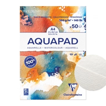 CLAIREFONTAINE GOLDLINE AQUAPAD A4 300G 50 ARK. 100% CELULOZA COLD PRESSED- ŚREDNIOZIARNISTY