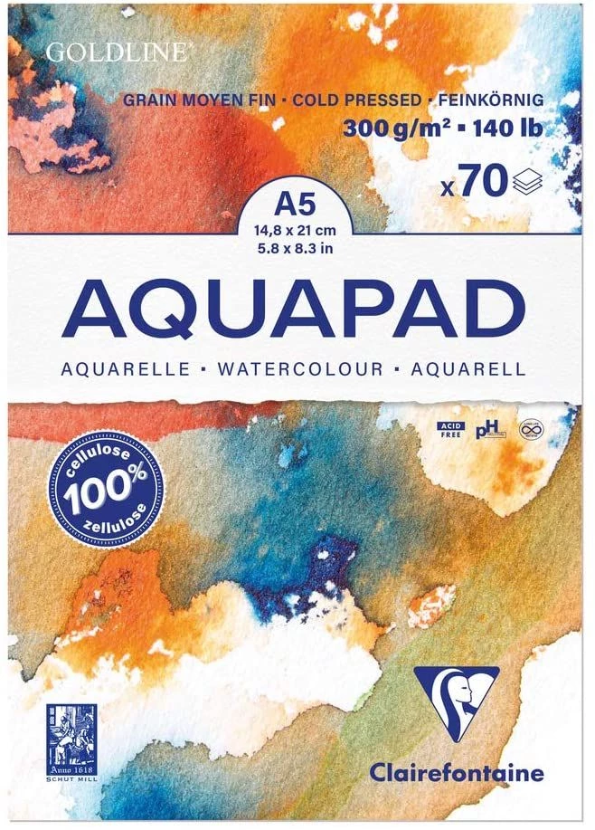 CLAIREFONTAINE GOLDLINE AQUAPAD A5 300G 70 ARK. 100% CELULOZA COLD PRESSED- ŚREDNIOZIARNISTY