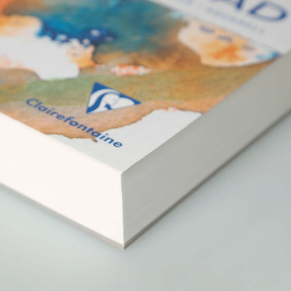 Blok akwarelowy Clairefontaine Goldline Aquapad 300g/m w formacie A5 o imponującej ilosci arkuszy, aż 70! Idealny dla poszukujących dobrego stosunku jakości do ceny. Papier do akwareli Cold Pressed jest średnioziarnisty i wykonany w 100% z celulozy, jego kolor to złamana biel. Faktura papieru z jedneh strony jest bardziej gładka z drugiej średnioziarnista. Papier jest mocny pozwala na pracę z dużą ilością wody w technice mokre w mokrym.