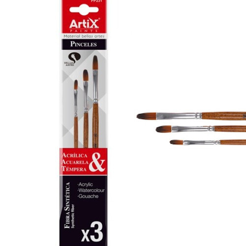 ARTIX ZESTAW PĘDZLI NYLONOWYCH KOCI JĘZYK 3 SZT. JASNY BRĄZ