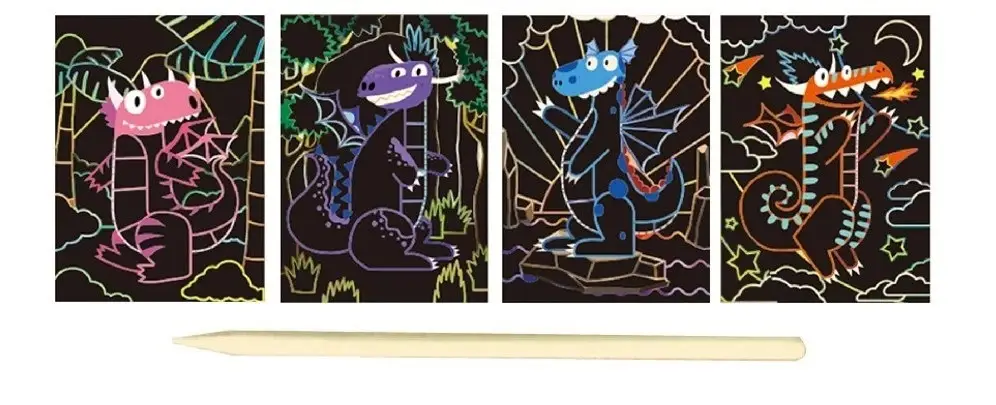 Zestaw zawiera 4 wydrapywanki oraz patyczek.