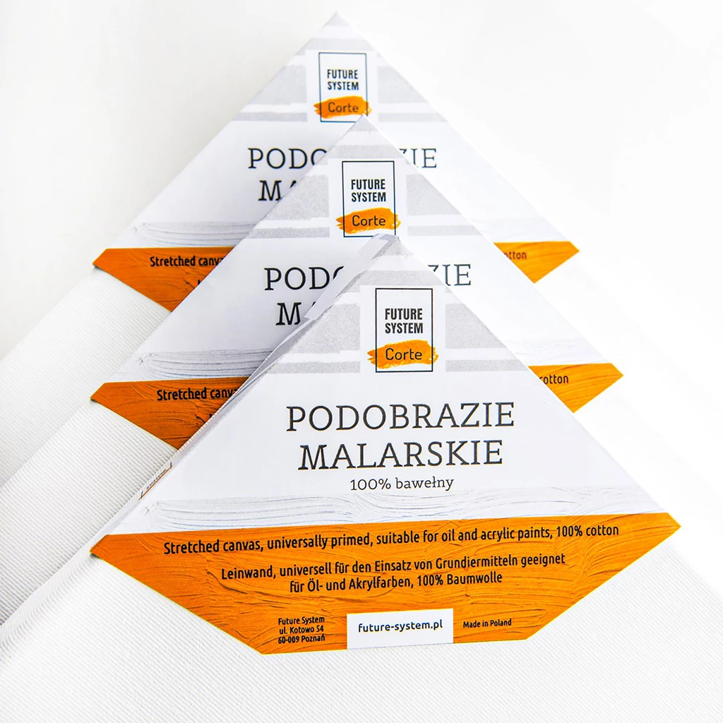 Podobrazie malarskie Future System Corte przeznaczone dla artystów oraz profesjonalistów. Na produkowane w Polsce sosnowe krosno malarskie o grubości 2 cm i szerokości 4,5 cm naciągnięte jest włoskie bawełniane płótno o gramaturze 322 g/m², trzykrotnie zagruntowane. Podobrazie jest gotowe do malowania przy użyciu zarówno do farb olejnych, jak i akrylowych.