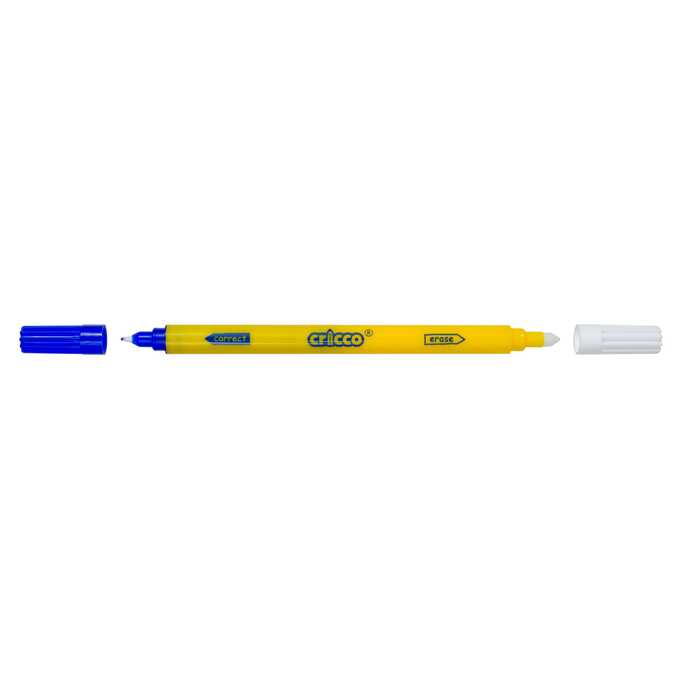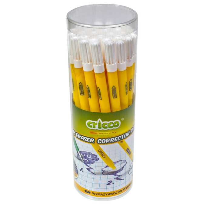 Wymazywacz do atramentu Cricco z białą stożkową końcówką 0,5cm do wymazywania tekstu i niebieską końcówką 0,8mm do nanoszenia poprawek na papierze. Świetnie sprawdza się zarówno w szkole, jak i w biurze.