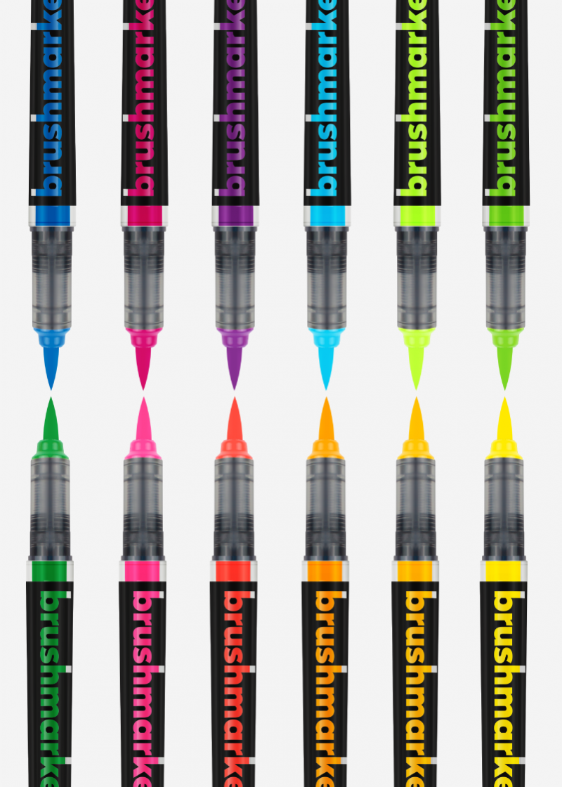 BrushmarkeryPRO zawierają 2,4 ml farby. Zostały wyprodukowane w technologii „płynnego atramentu” dzięki czemu nie zmieniają intensywności barwy aż do ostatniej kropli oraz pozwalają na bieżąco kontrolować ilość farby. Są dwukrotnie bardziej wydajne od tradycyjnych markerów filtrowych. Dodatkowo wyposażone są w japońską bardzo wytrzymałą i super elastyczną końcówkę nylonową. Zawierają nietoksyczne farby o intensywnej barwie na bazie barwników. Kolory można mieszać, rozjaśniać i uzyskiwać przejścia tonalne stykając końcówki markerów.