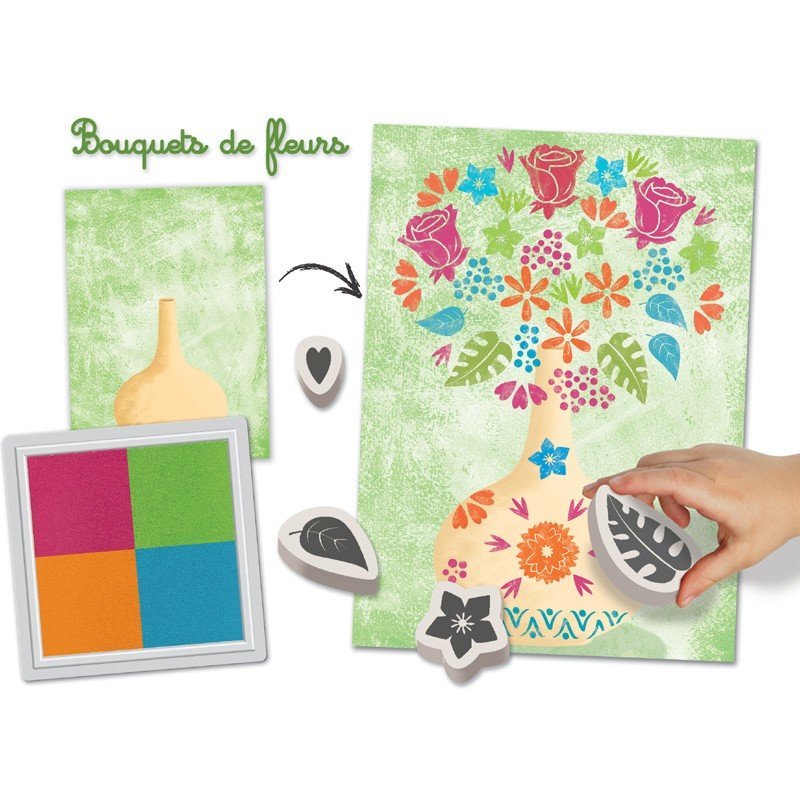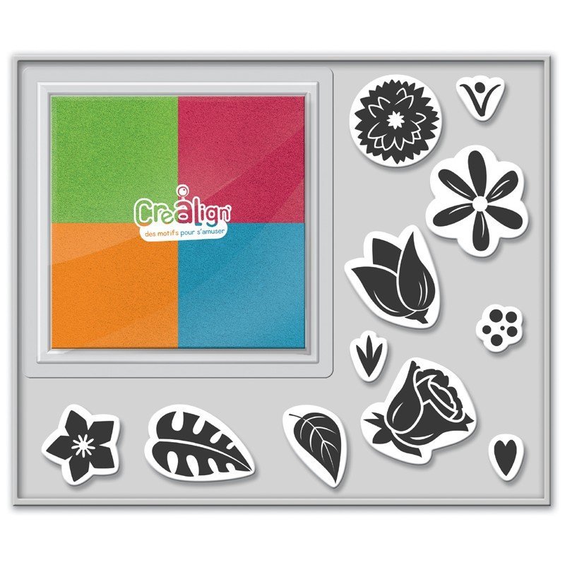 Zestaw 10 stempelków i 4 tuszy. stempelki maja motywy kwiatowe są idealnym uzupełnieniem do kart Crea Lign' Bukiety.