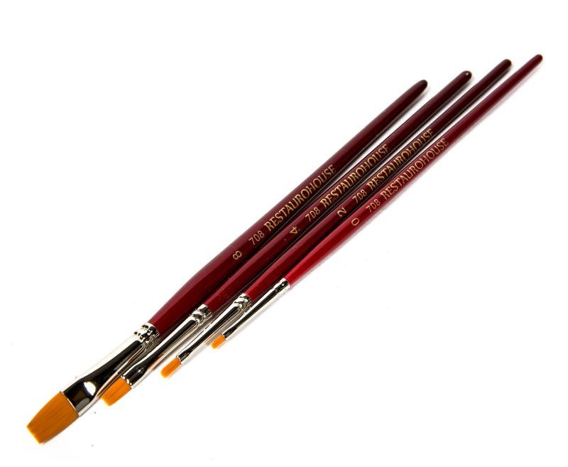 Pędzle płaskie do farb wodnych, akrylowych, olejnych z bardzo elastycznym włosiem.