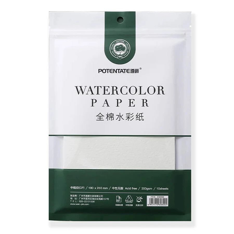 Potentate papier akwarelowy CP (średnioziarnisty) 100% bawełna 300g 260x380mm 10 ark.