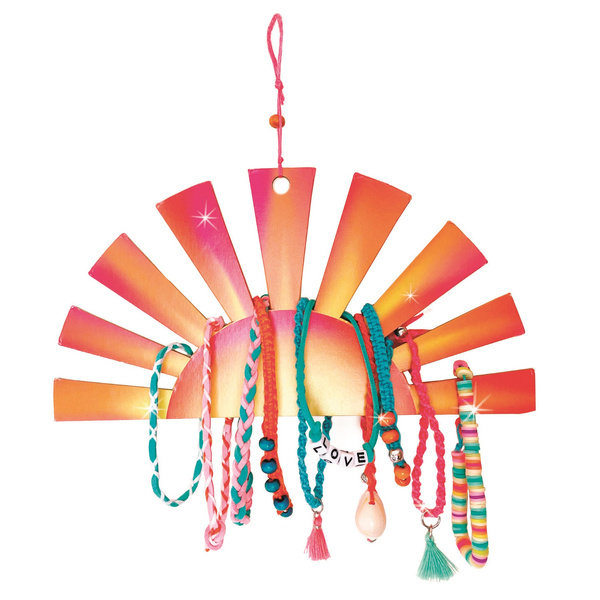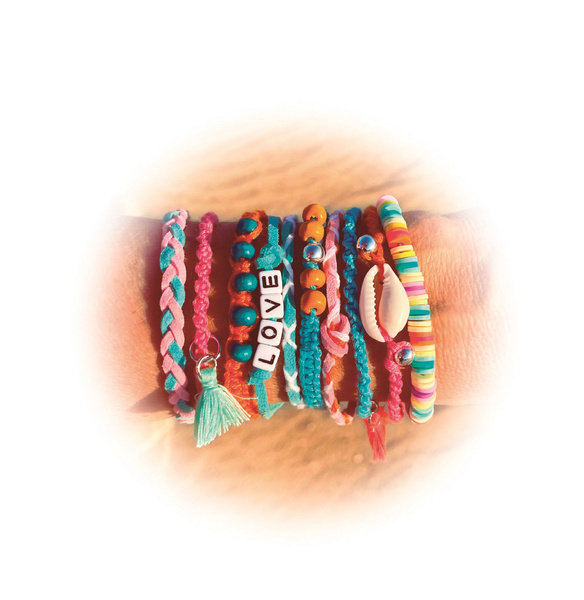 Zestaw MOJE BRANSOLETKI zawiera wszystko co niezbędne by dziecko samodzielnie mogło wykonać różnymi technikami kilka bransoletek. Wykonane prace mogą być przechowywane na dołączonym stojaku jednocześnie będąc fajną dekoracja dziecięcego pokoju. Zestaw zadowoli zarówno młodsze dzieci (dedykowny jedy dla dzieci w wieku od 6 lat) jak i nastolatków.