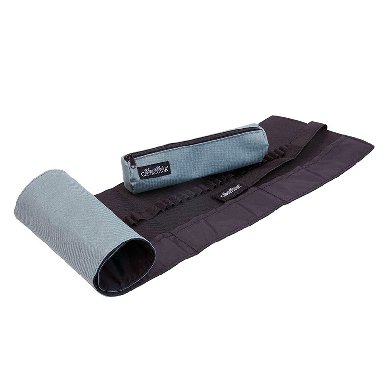 Rolowany, płócienny piórnik na 48 kredek marki Cretacolor.