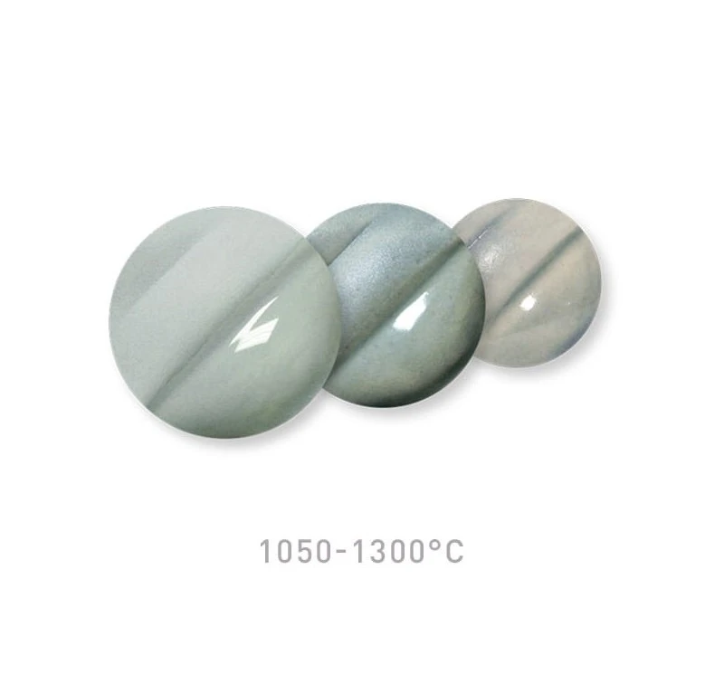 Farba podszkliwna V-356 Pearl Grey z serii AMACO Velvet Underglazes daje srebrnoszary kolor, który ciemnieje do odcienia cyny przy wypale na 1200°C, a przy temperaturze wypału 1300°C zaczyna blaknąć.