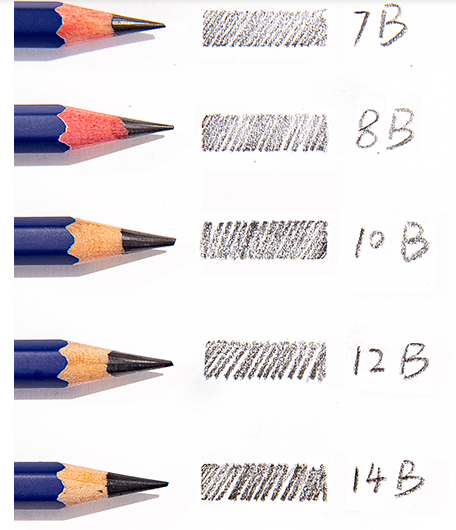 Ołówek drewniany o rzadko spotykanym stopniu miękkości (12B). Niezatemperowany.
