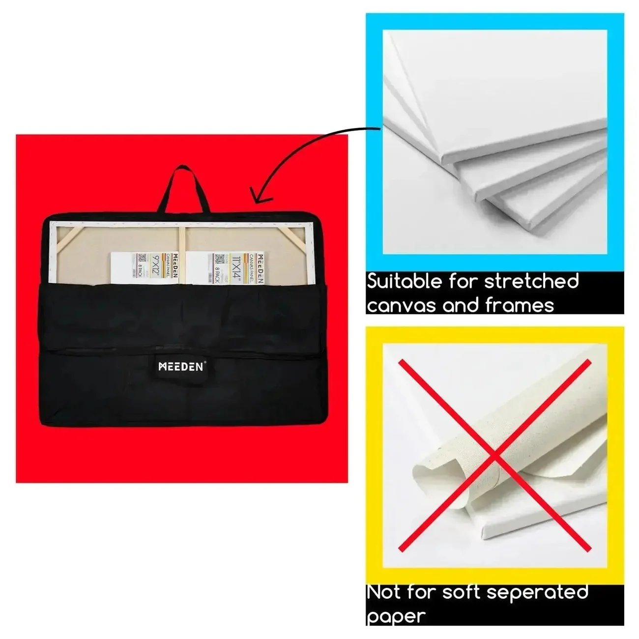 Materiały wysokiej jakości: Etui na portfolio artystyczne MEEDEN wykonane jest z wysokiej jakości tkaniny Oxford 600D, która jest nietoksyczna, lekka i trwała, a także ma dużą nośność.