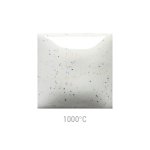 Szkliwo Mayco SP-216 Speckled Cotton Tail przy wypale na niską temperaturę daje biały kolor z żółtymi, niebieskimi oraz pomarańczowymi kropkami. Wraz ze wzrostem temperatury kropki rozlewają się w większe plamy.