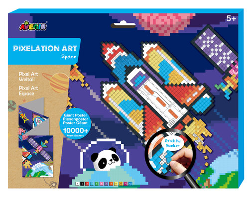 Piksele to nowy wymiar zabawy w wyklejanie z marką Avenir. Do dyspozycji dziecka jest duży (wymiary: 84 x 29 cm) plakat, który dziecko wykleja małymi, piankowymi naklejkami - piskelami według podanej numeracji.