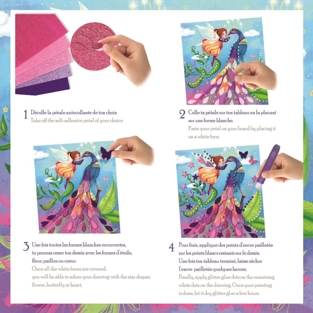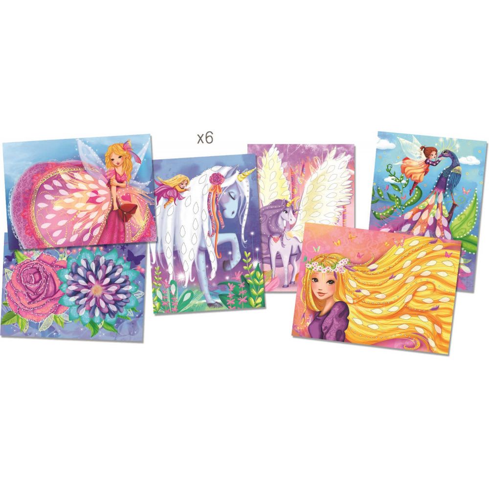W tym zestawie znajduje się aż sześć obrazków do dekorowania ulubionymi przez dzieci technikami - wyklejaniem i zdobieniem brokatem.