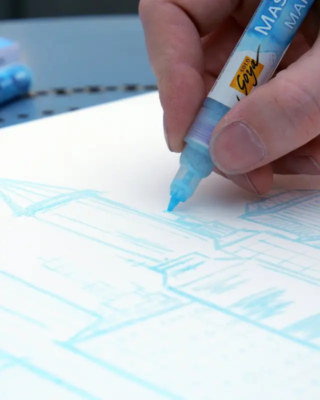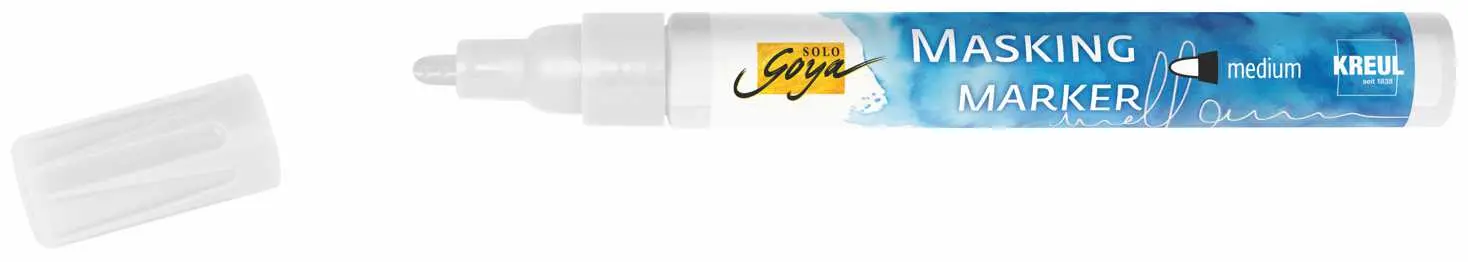 Biała typografia. Delikatne linie. Akcenty w kolorze wody. Marker maskujący SOLO GOYA marki KREUL pozwala uzyskać dokładne czcionki i ostre linie pośród płynących akwareli. Gumowaty płyn w piórze nakłada się na wybrany obszar. Szybko wysycha, a następnie może być malowany markerem SOLO GOYA Aqua Paint Marker lub farbą akwarelową. Gdy wszystko wyschnie, maseczkę można zdjąć bez pozostawiania śladów. Szybko, łatwo, precyzyjnie. Idealny dla wszystkich, którzy chcą połączyć efekt akwareli z elementami odręcznego napisu. Odpowiedni do stosowania na wszelkiego rodzaju podłożach z papieru.