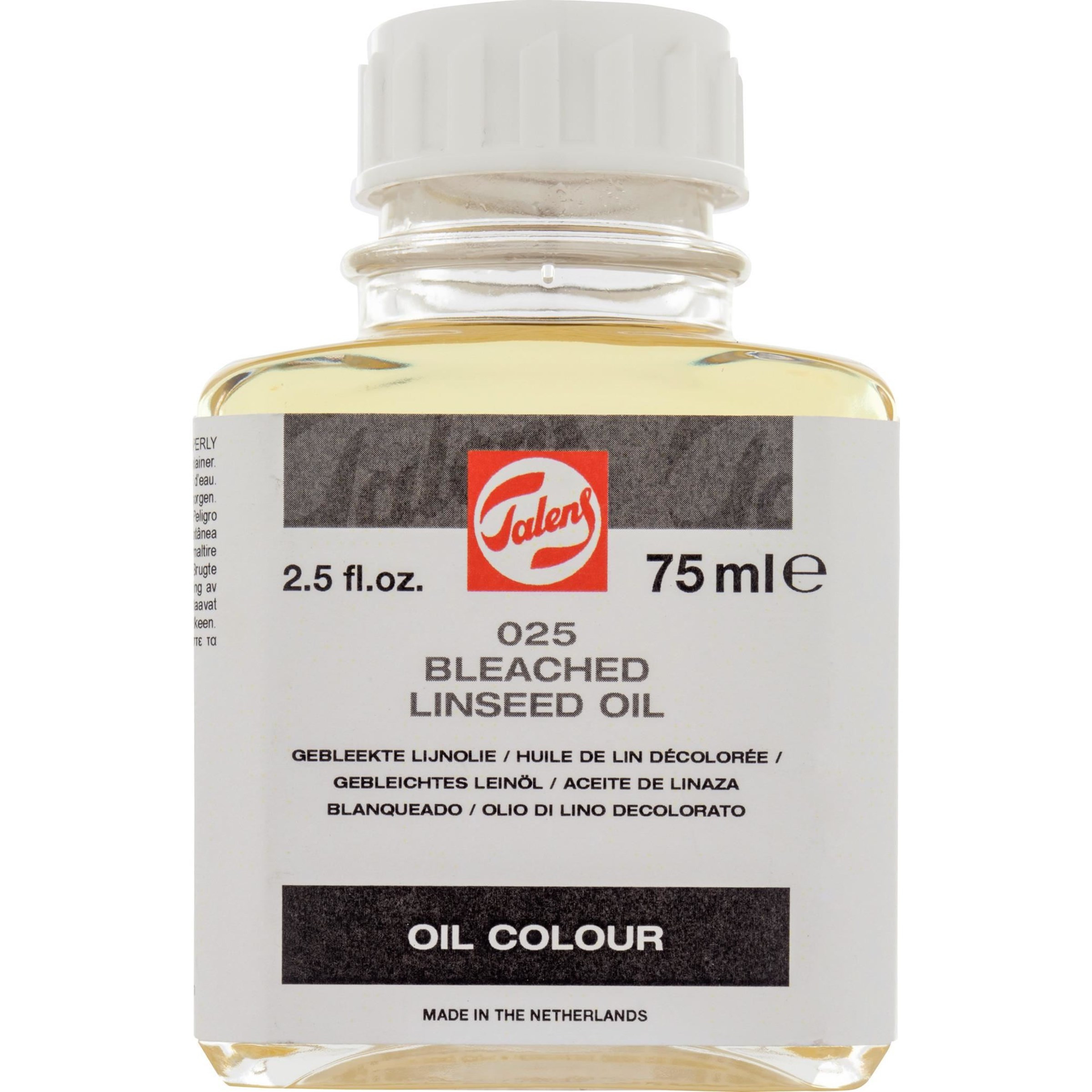 Wysokiej jakości medium malarskie Royal Talens do farb olejnych. Profesjonalny proces bielenia oleju przyczynił się do powstania niniejszego produktu, którego celem jest rozrzedzanie konsystencji farby, a w konsekwencji poprawienie rozprowadzalności farby na płótnie. Medium pozwoli również złagodzić ślady pociągnięć pędzlem. Posiada te same właściwości jak destylowany olej lniany, ale wysycha nieco szybciej, co skraca czas pracy artysty. Również zażółcenia są mniej widoczne w ciemniejszych warunkach niż przy użyciu oleju oczyszczonego. Może być rozcieńczany terpentyną lub białym spirytusem.