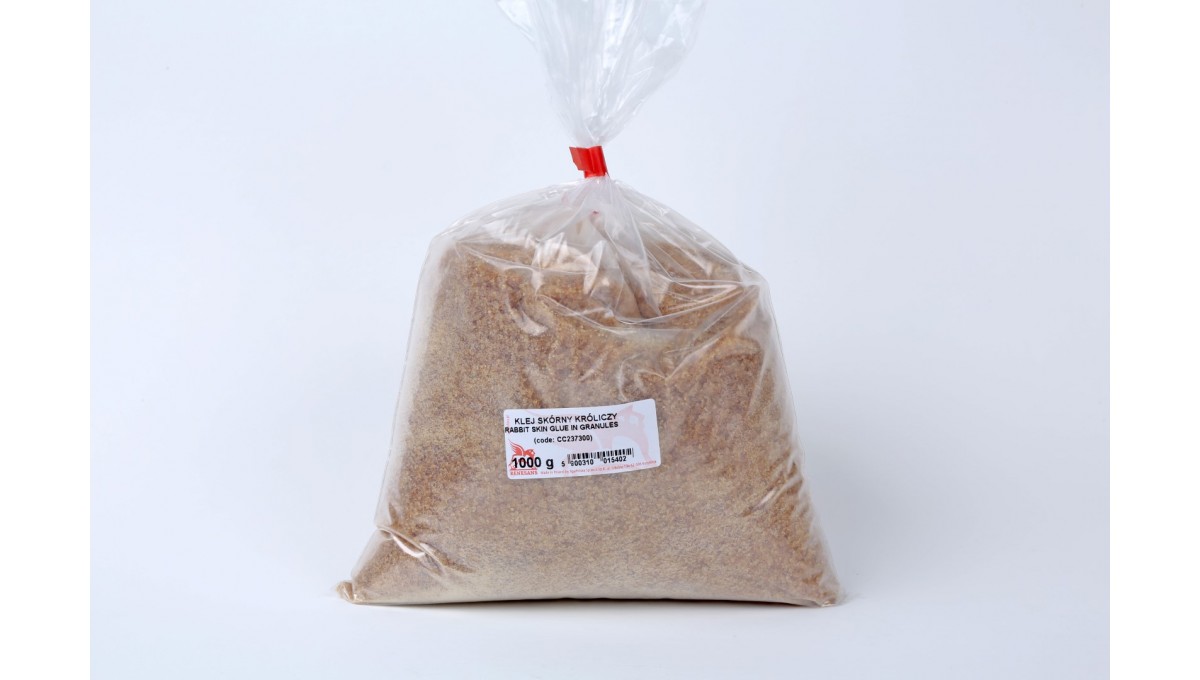 Jest spoiwem o pochodzeniu zwierzęcym otrzymywanym z kawałków odpowiednio preparowanej skóry króliczej. Sprzedawany jest w postaci granulek, gdyż w takiej postaci łatwiejsze jest jego pakowanie i dozowanie. Klej ma zastosowanie w bardzo wielu produktach do pozłotnictwa. W celu przygotowania mieszanki klejowej należy rozpuścić 100gr produktu w wodzie, najlepiej zanurzając pojemnik z klejem w gorącej wodzie. Lekkie ogrzanie wody pozwoli na łatwiejsze rozpuszczenie kleju.