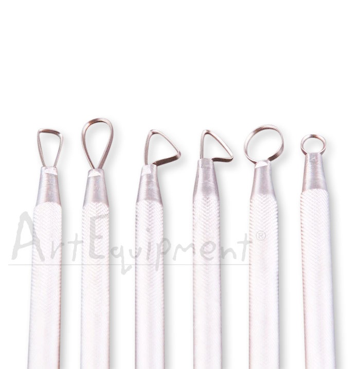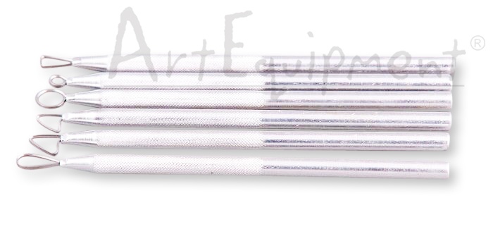 Komplet narzędzi-oczek do modelowania w glinie, modelinie oraz w innych masach plastycznych. Długość narzędzi wynosi 13cm, a każde z nich jest zakończone innym profilem. Szczególnie przydatne przy wydrążaniu małych form rzeźbiarskich tak by ich ciężar i ilość zużytej masy był mniejszy.