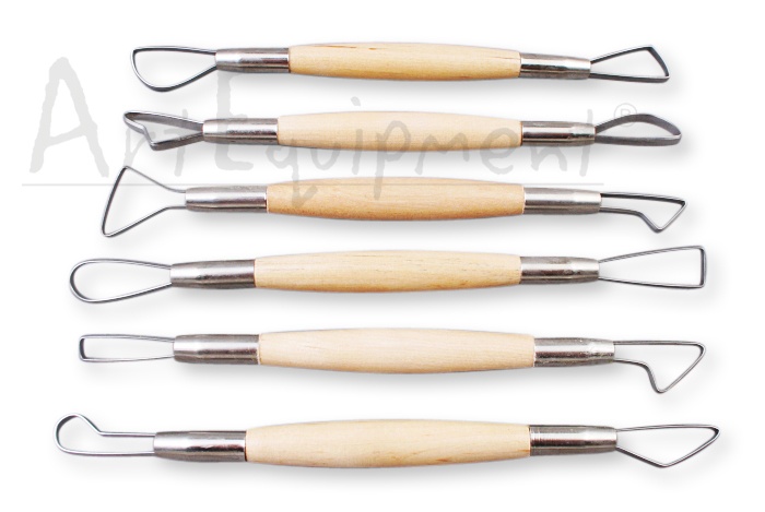 Komplet dwustronnych narzędzi-oczek do modelowania w glinie, modelinie oraz w innych masach plastycznych. Długość narzędzi wynosi 15cm, a każde z nich jest zakończone innym profilem. Szczególnie przydatne przy wydrążaniu małych form rzeźbiarskich tak by ich ciężar i ilość zużytej masy był mniejszy.