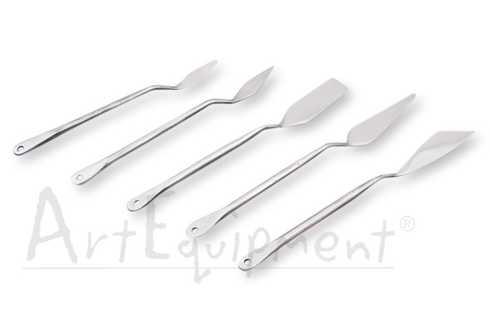 Komplet narzędzi sztukatorskich jednostronnych wykonanych ze stali nierdzewnej. Długość narzędzi wynosi 23 cm.