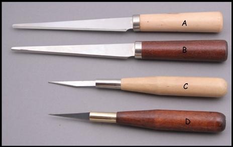 Do wyboru cztery rodzaje noży. Długości ostrzy: A i B- 12cm, C- 5 cm, D- 3,5cm.