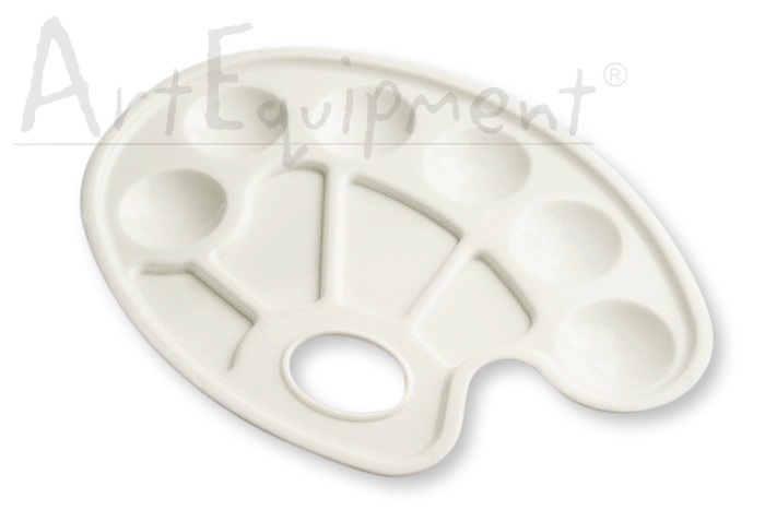 Mała paleta plastikowa o wymiarach 17x24cm. Doskonała do farb wodnych.