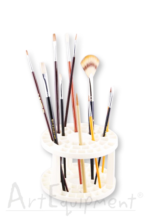 Plastikowy stojak na pędzle umożliwiający przechowywanie i suszenie pędzli.