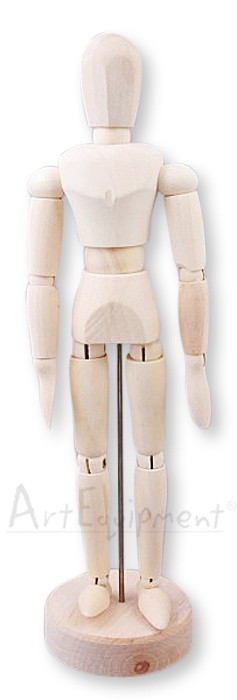 Drewniany manekin postaci ludzkiej, wysokość 20cm.