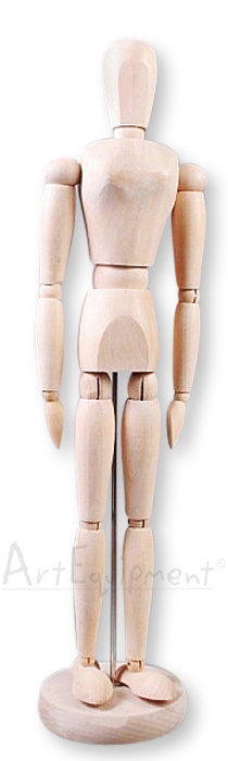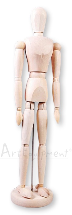 Drewniany manekin postaci ludzkiej, wysokość 40cm.