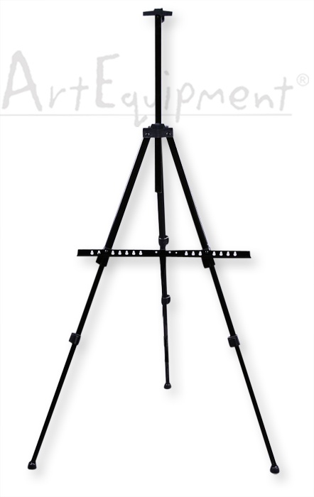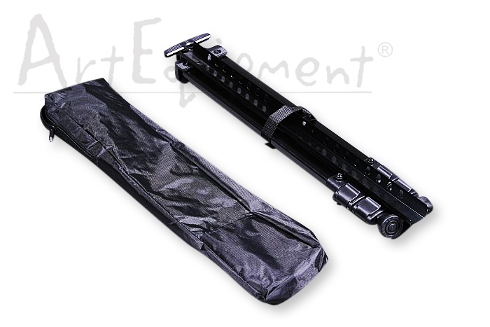 Teleskopowa sztaluga plenerowa, wykonana z aluminium. W komplecie pokrowiec z paskiem na ramię.